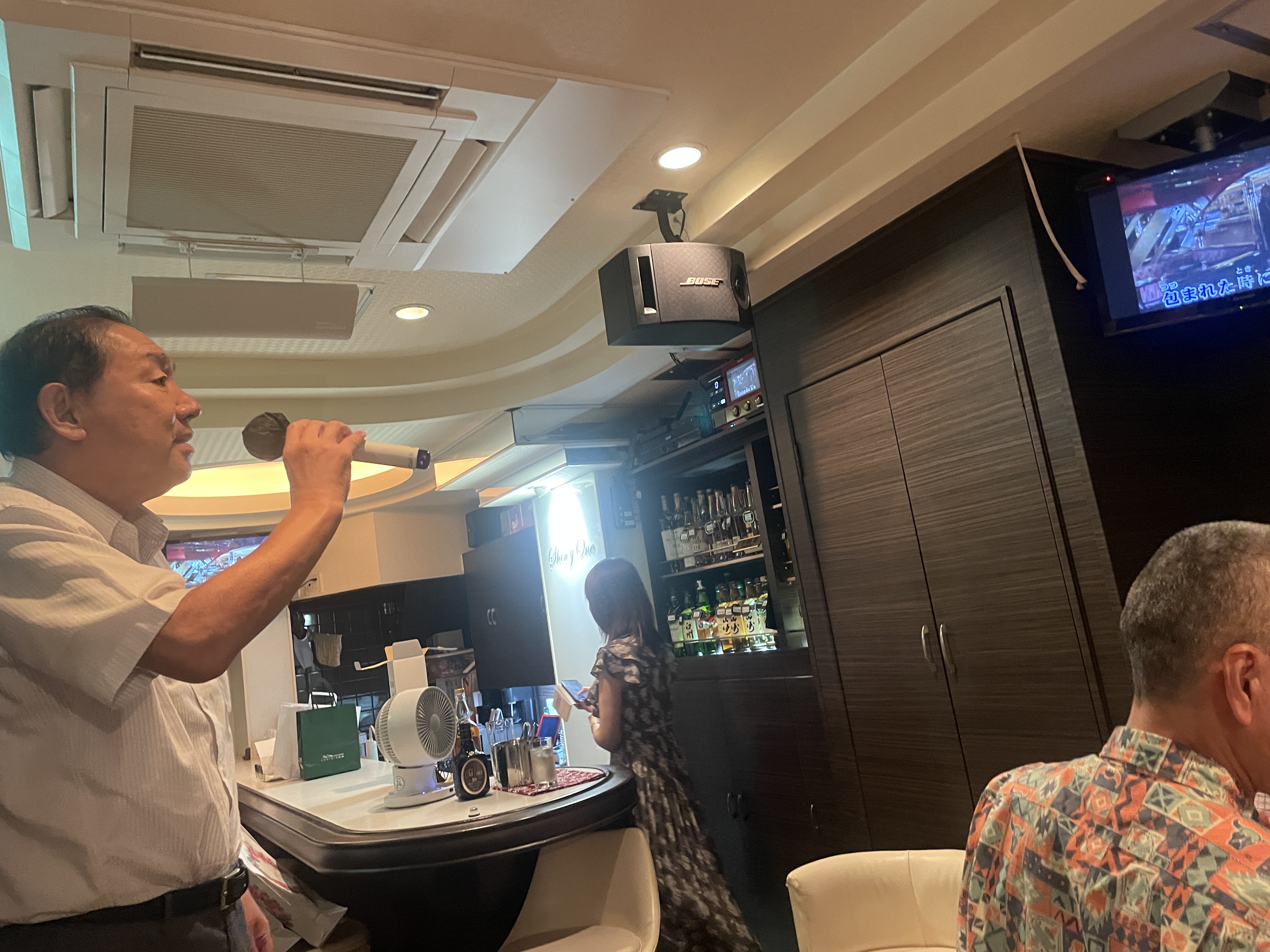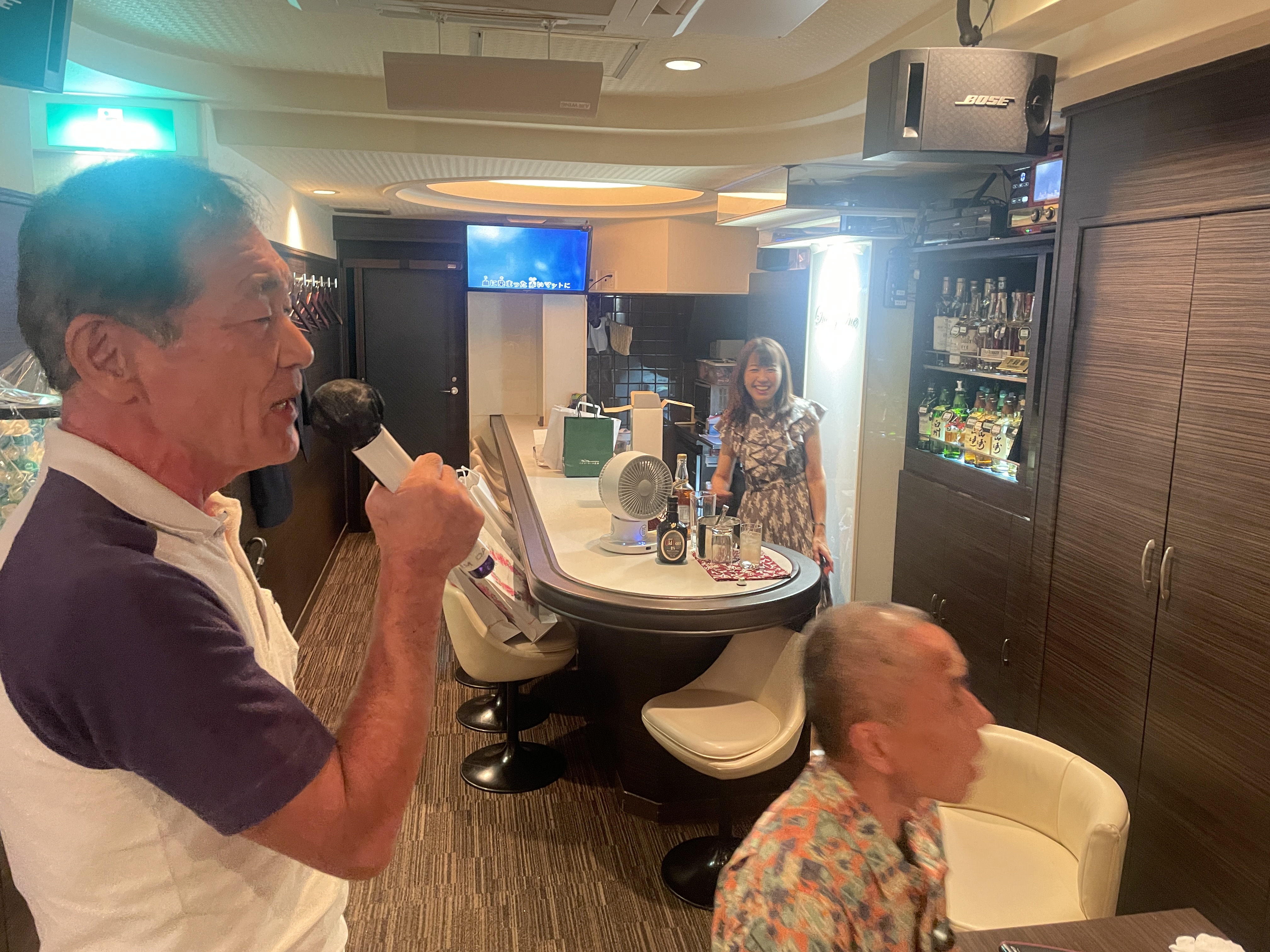 2次会場は、先輩数年来行きつけのスナックでカラオケ三昧。